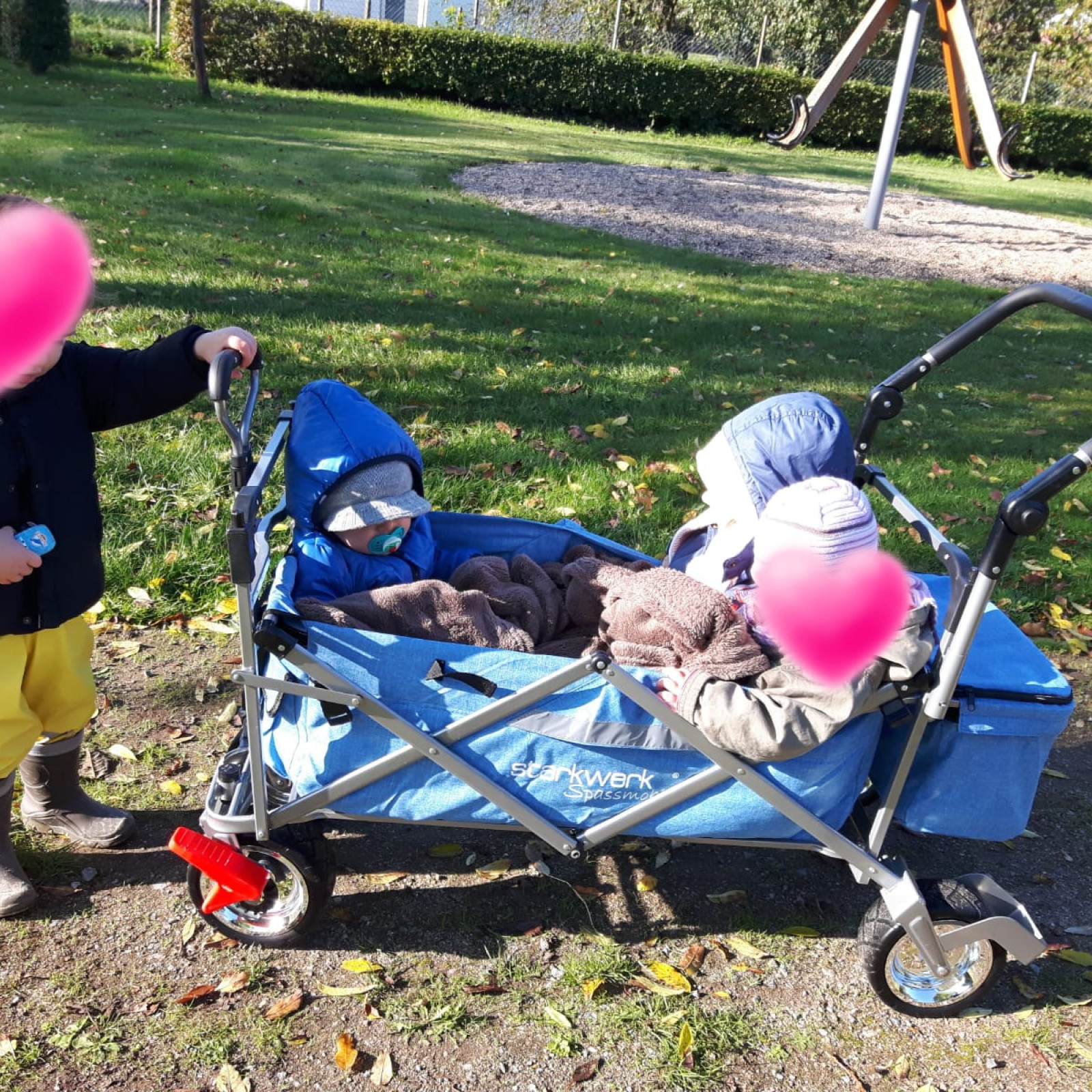 In Anbetracht der Tatsache, dass sich ein Spielplätze in der Nähe unserer Einrichtung befindet, der wiederum sehr großflächig ist und viel Grünraum anbietet, haben wir viele Möglichkeiten dazu.